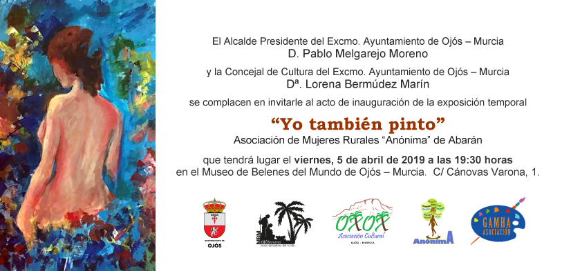 INVITACIÓN A LA EXPOSICIÓN "YO TAMBIEN PINTO" Detalles Categoría de nivel principal o raíz: Servicios Categoría: Actos Culturales y Deportivos Publicado: Sábado, 30 Marzo 2019 16:35 Visto: 58949 Anterior Siguiente