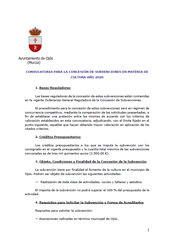 Bases de convocatoria de subvenciones en materia de cultura año 2020