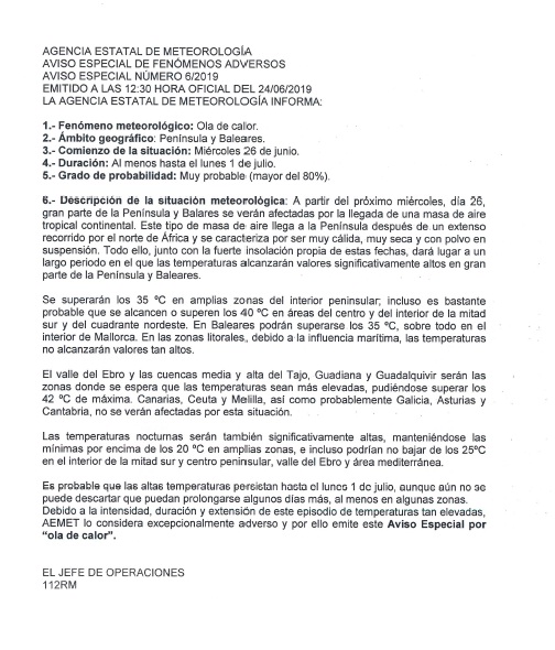 AVISO OLA DE CALOR Detalles Categoría de nivel principal o raíz: 8.-Información y Atención al Ciudadano Categoría: 8.3.-Participación Ciudadana Publicado: Martes, 25 Junio 2019 18:25 Visto: 46080 Anterior Siguiente
