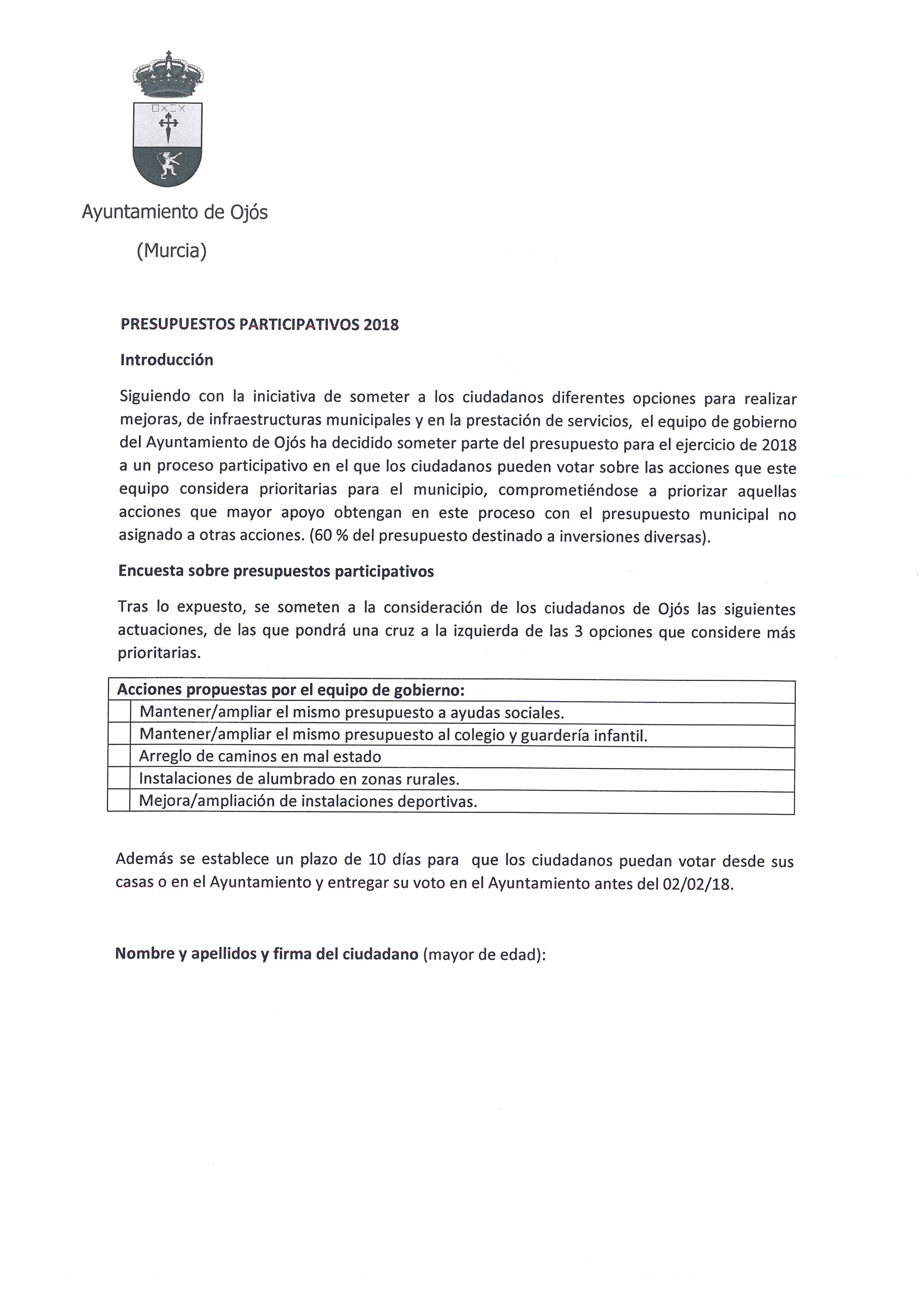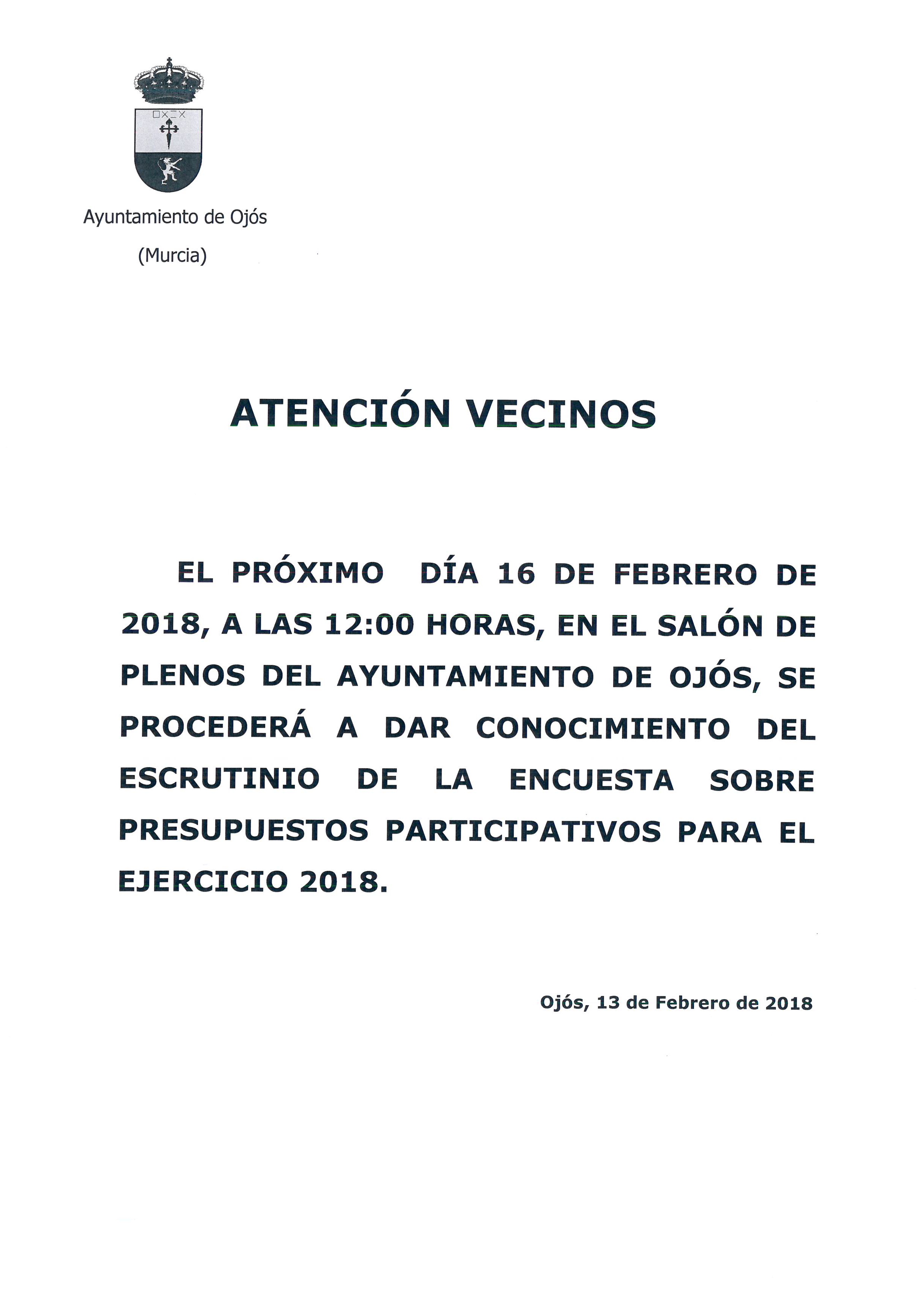 ESCRUTINIO DE LA ENCUESTA SOBRE PRESUPUESTOS PARTICIPATIVOS 2018